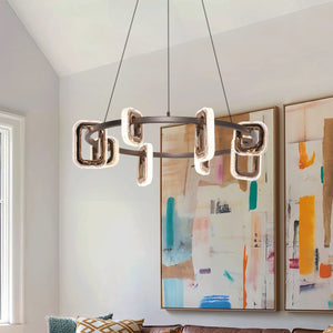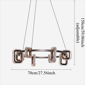 This modern crystal chandelier features a sleek geometric design, blending gold aluminum with clear acrylic for a stylish and artistic appeal. The warm LED glow creates a captivating halo effect, perfect for adding a luxurious touch to any room. Ideal for creating a striking centerpiece in both dining and living spaces, this gold crystal chandelier effortlessly elevates any setting, whether it’s a chandelier ceiling light or crystal chandelier ceiling light.